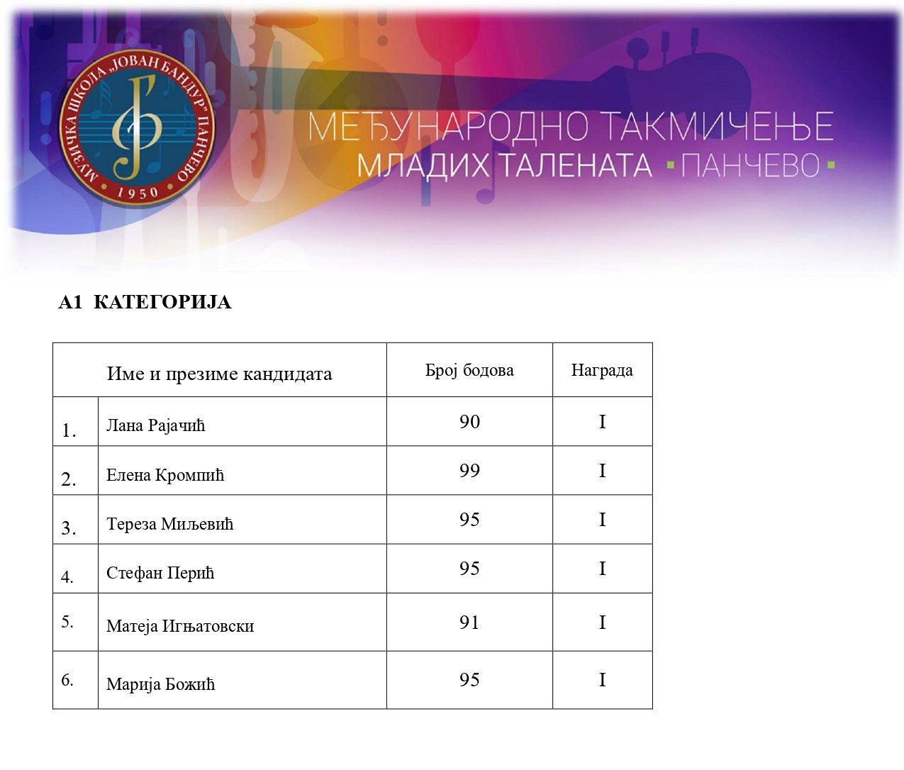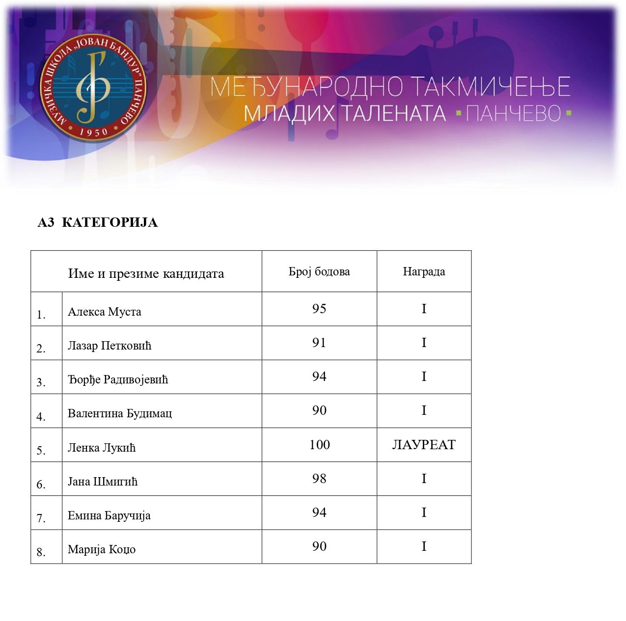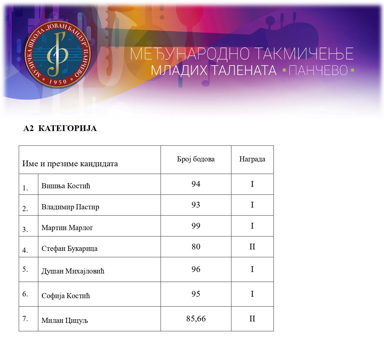 12. такмичење „Јован Бандур“ хармоника, 6. март 2026.