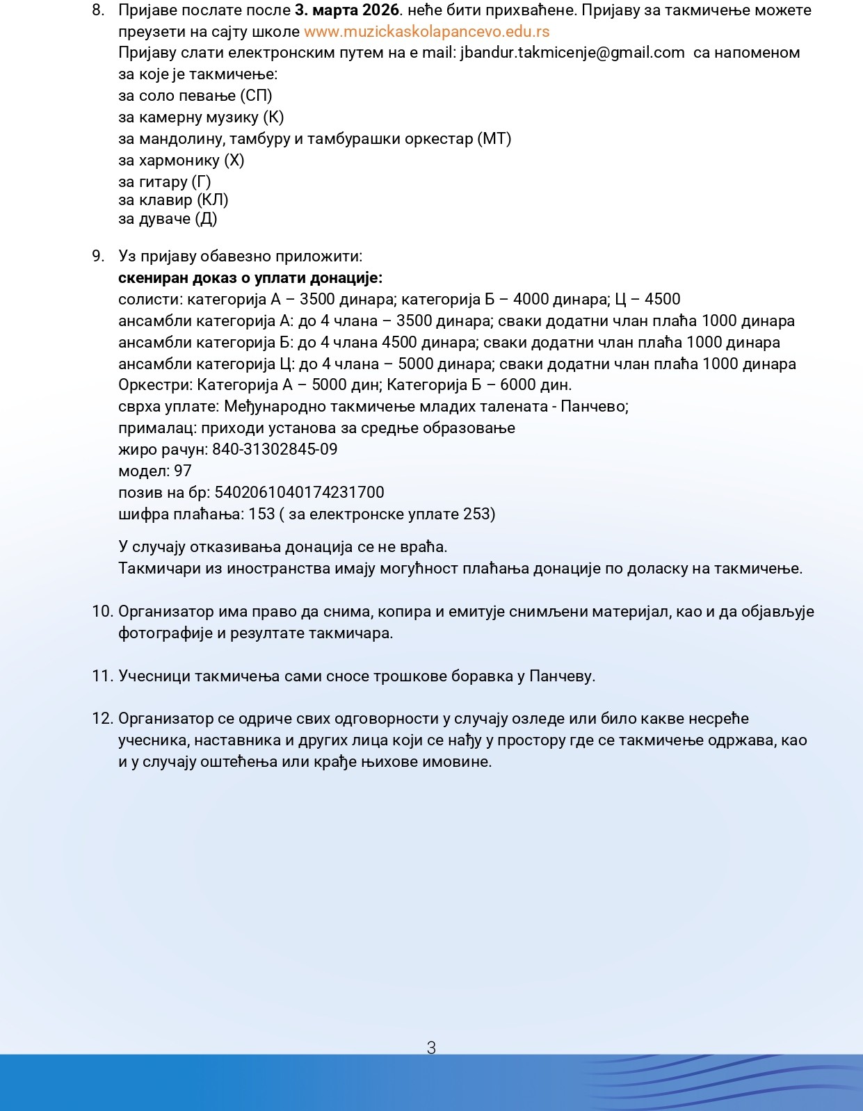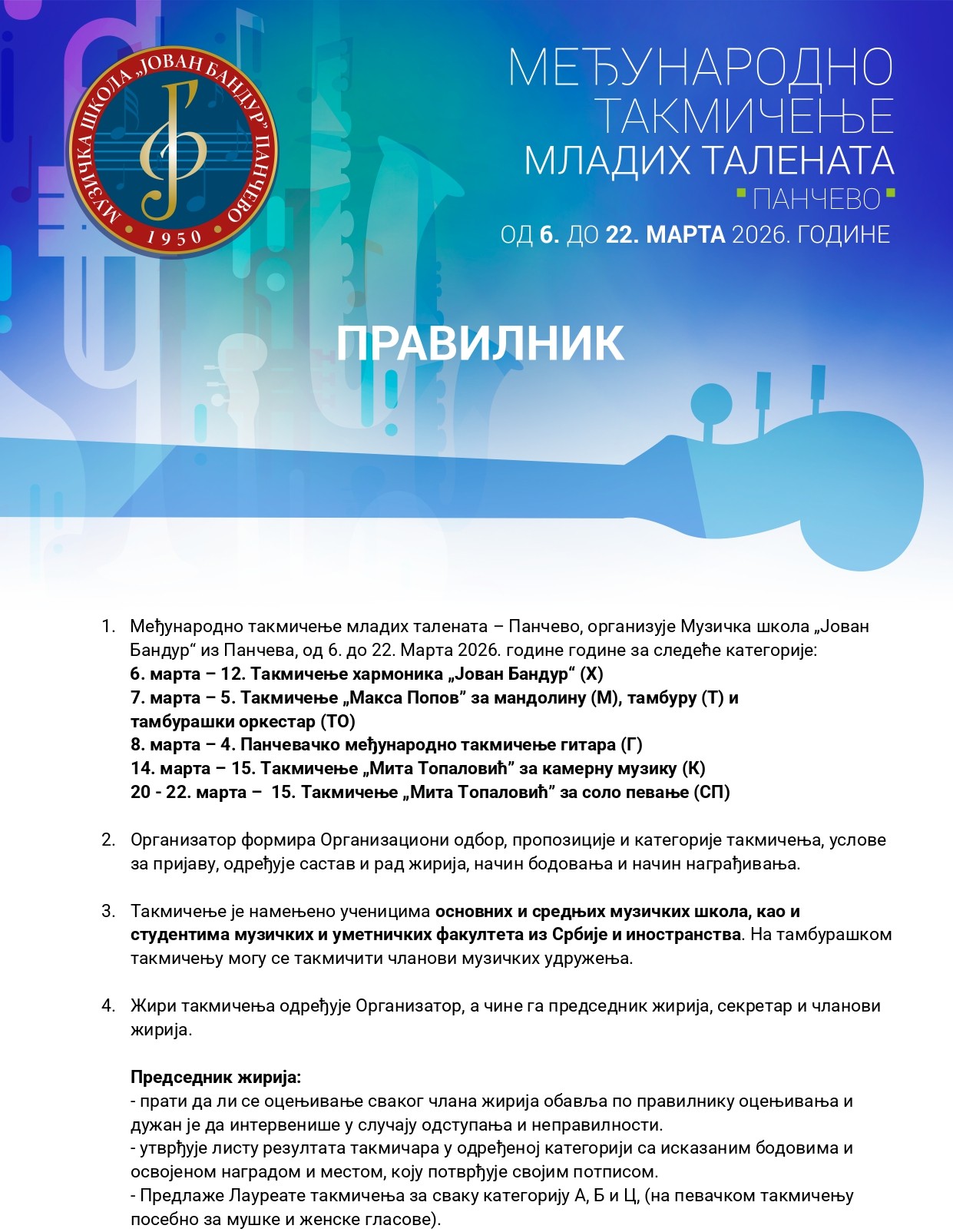 Међународно такмичење младих талената – пријаве, правилник, пропозиције