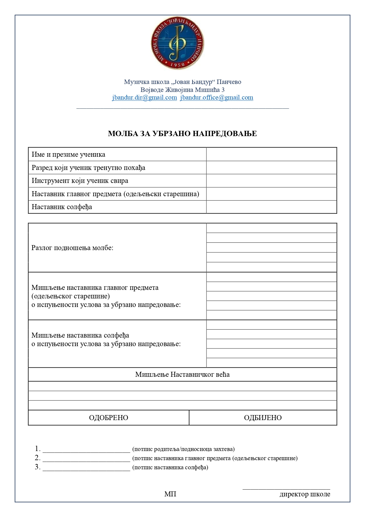 Молба за убрзано напредовање – ПРЕУЗИМАЊЕ