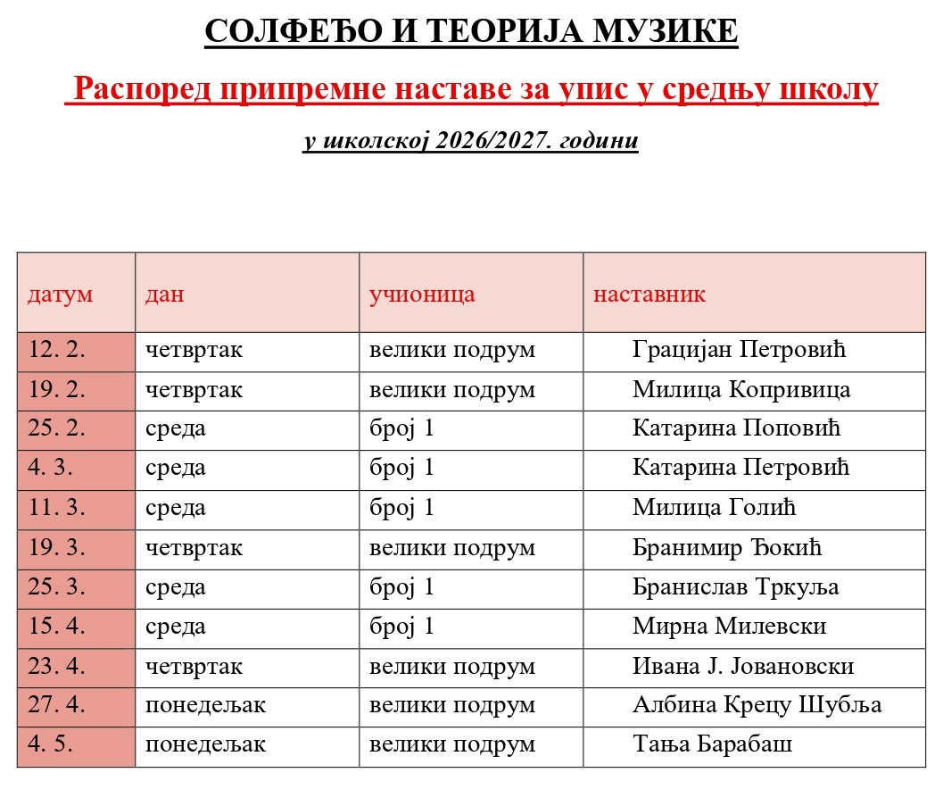 Распоред ансамбала ОШ/СШ – 2025/2026.