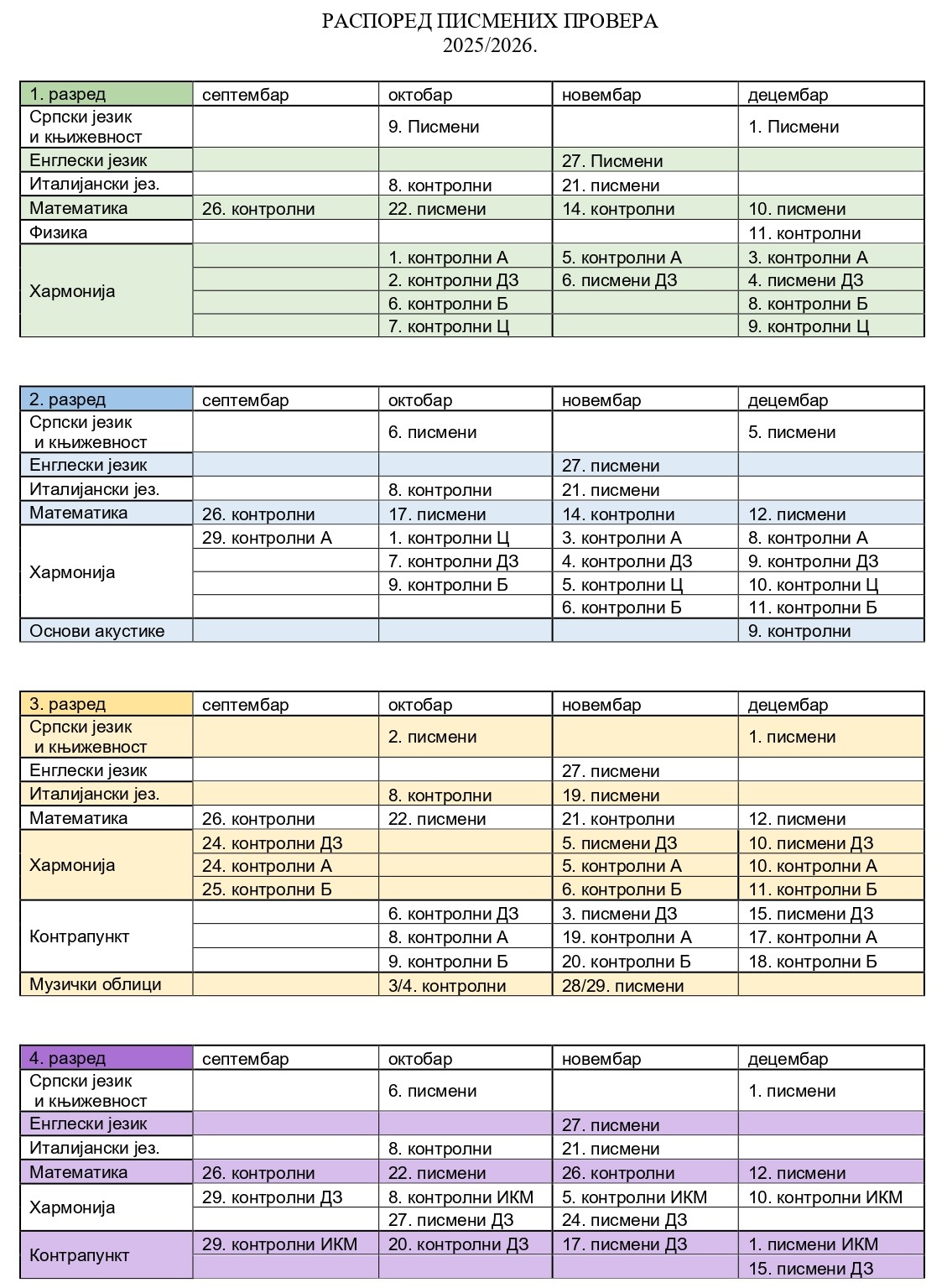 Распоред ансамбала ОШ/СШ – 2025/2026.